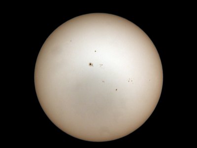 Sonne, mit der Digitalkamera durch 50mm Plössl-Okular fotografiert.