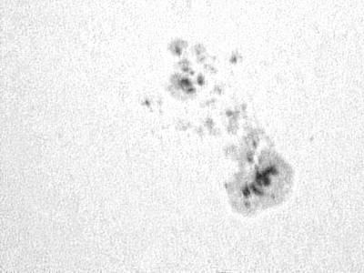 Trotz des heftigen Windes halte ich die beiden markanten Fleckengruppen mit der WebCam fest, mit durchaus brauchbarem Erfolg dank Registax.