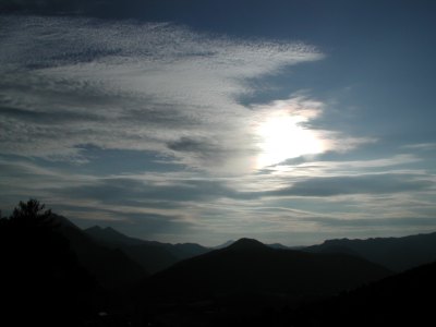 Heute sind die Verhätnisse genau umgekehrt wie am Vortag; einige dichtere Wolken, die am Vormittag aufgezogen waren, hatten sich am Nachmittag verzogen und hinterliessen einen strahlend blauen Himmel. Doch gegen Abend zogen neue, teilweise recht dichte Wolken auf. Sollte diese Nacht entgegen aller Vorhersagen keine Beobachtung zulassen? Mal sehen ...