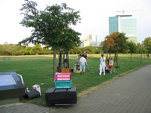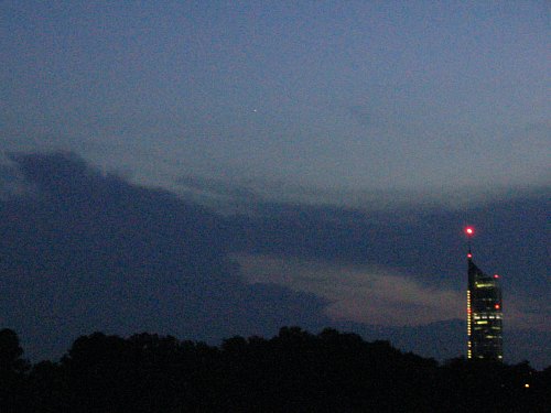 Nach dem Eröffnungsfest am 4. Juli wird es heute das erste Mal Ernst mit dem Sterngucken. Das Wetter hat ein Einsehen mit uns, die schweren Gewitterwolken bleiben tief im Westen. Weniger Einsehen mit uns haben die Gelsen hier im Donaupark ...