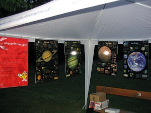 Ohne Erklärung geht aber gar nichts. In unserem Informationszelt zeigen und erklären wir, was es am Himmel alles zu sehen gibt.