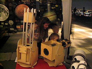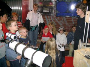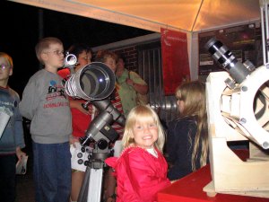 Sie kommen! Und auch der Regen macht eine Pause, bald trocknet der Boden wieder auf. Geduldig hören Groß und Klein zu, wie Fernrohre funktionieren und was man alles sehen könnte, wenn doch bloss das Wetter mitspielen würde.