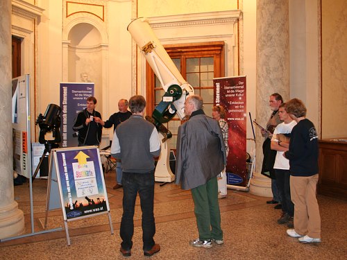 Um einerseits leichter ein größeres Publikum zu erreichen, andererseits aber unsere Mission, die Zusammenarbeit der astronomischen Organisationen zu fördern, aktiv zu verfolgen, präsentieren wir uns am Astronomietag gerne mit einem Partner, heuer mit einem Informationsstand am Institut für Astronomie (Universitätssternwarte), vor allem um zu zeigen, dass auch Amateure und Forscher gut unter einem Dach existieren können. Ziel unserer Präsentation: Astronomie für Alle.