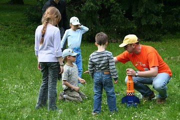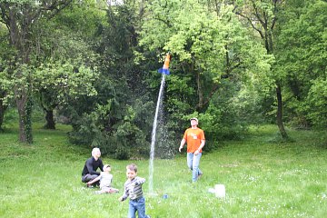 In der "Gruabn", einer abseits des Institutsgebäudes gelegenen Senke im Sternwartengelände, sammeln sich vor allem die Jüngsten. Grund: Hier steht nicht nur ein Coronado PST, hier starten auch Raketen! Franz Kerschbaums Wasserraketen sind ein Riesenspass!