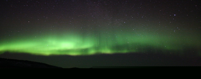 Keine Frage. Das ist die kälteste Beobachtungsnacht in der Geschichte der WAA. Es ist auch die tiefste Temperatur, die ich je erlebt habe. -34°C! Werte Leserinnen und Leser, Sie fragen sich jetzt sicher, wie das auszuhalten ist. Nun, nur, und wirklich nur mit entsprechender Kleidung. Das Anziehen dauert eine gute Dreiviertelstunde. Mehrere Schichten Schiunterwäsche, mehrere Socken, diverse Pullover, Unterjacken, dicke Daunenjacke. Kältecreme im Gesicht, Sturmhaube, die nur die Augen freilässt, darüber Wollhaube, darüber Kapuze. Und sehr warme Schuhe. Mit aluminiumbeschichteten Isoliersohlen und Einlagen aus Lammfell. Doppelte Handschuhe natürlich auch. Die Ausrüstung fix und fertig montiert, mehr als Belichtungszeit einstellen und auslösen geht so nicht. Und trotzdem: Immer in Bewegung bleiben. So und nur so funktioniert Beobachten unter derart extremen Bedingungen. Das Polarlicht ist schön. Nicht so spektakulär wie am Anfang der Woche, aber schön genug, um draußen zu bleiben. Und: Es könnte ja jederzeit mehr daraus werden ...