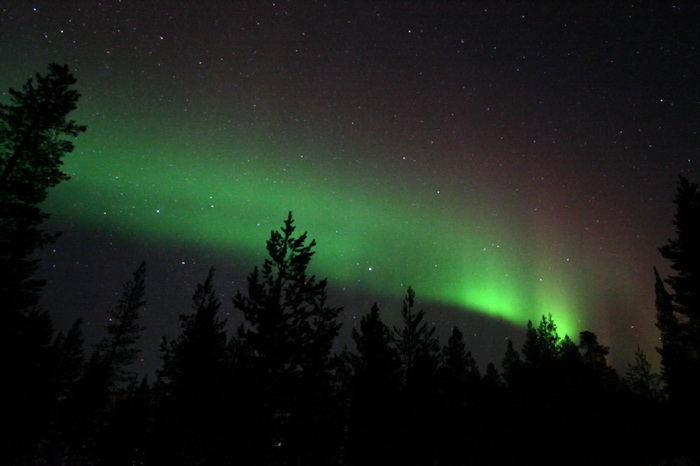 Gegen Mitternacht sinkt die Polarlichtaktivität gegen Null. Ein angekündigter Teilchenschauer aus einem Coronalen Loch bleibt aus. Eine Weile harren wir auf dem Eis aus (dabei zeigt sich, dass auf einem Bein stehen gut ist gegen etwaiges Frieren in den Füßen). Was zu folgender Beschreibung führt: "In Lappland in der Nacht, bei unter -30°C, auf einem zugefrorenen See auf einem Bein stehen, in den Himmel starren und auf ein Loch warten ..." - wer traut sich das ausserhalb des Kontexts zuzugeben? Fortsetzung folgt ... |