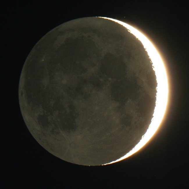 Der Mond ist ein sehr schöner Anblick heute, vor allem der Erdschein beeindruckt.