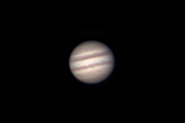 Interessante Libration: Mare Crisium ist randfern, deutlich erkennt man die Mare Marginis und Smythii. Jetzt zu Jupiter; innerhalb von drei Minuten eine LRGB-Serie aufzunehmen ist ein Geduldspiel, aber es gelingt auch bei dem starken Wind.
