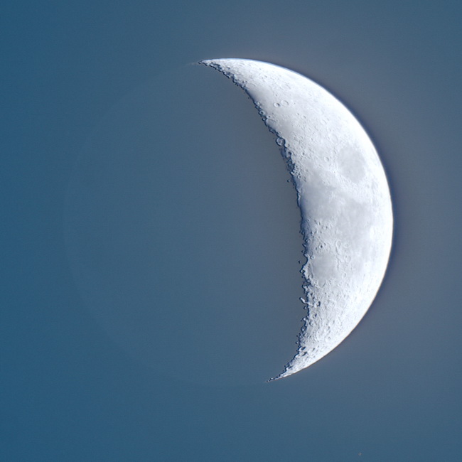 Merkur fällt den Cirren leider zum Opfer. Erstes Beobachtungsobjekt ist der Mond. Bei den kurzen Belichtungszeiten macht der Wind wenig aus.